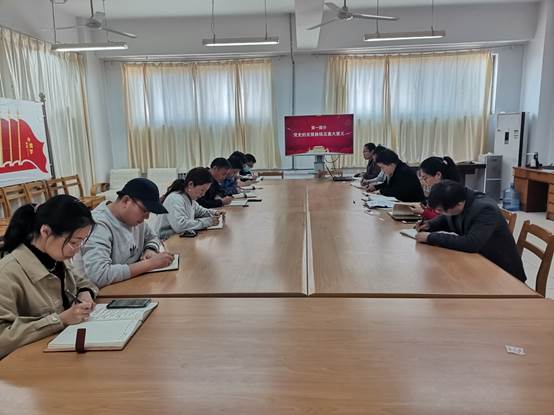 习近平总书记指出,历史是最好的教科书,中国革命历史是最好的营养剂。学习党史、国史,是坚持和发展中国特色社会主义、把党和国家各项事业继续推向前进的必修课。党课带领大家认真梳理了在中国共产党百年历史中,中国共产党完成和推进的四件大事:中国共产党在新民主主义革命时期完成救国大业、中国共产党在社会主义革命和建设时期发完成兴国大业、中国共产党在改革开放和社会主义现代化建设新时期推进富国大业、中国共产党在中国特色社会主义新时代推进并将在本世纪中叶实现强国大业。大家还学习了党的历史给我们提供的宝贵经验。