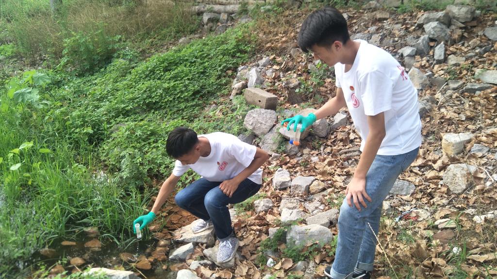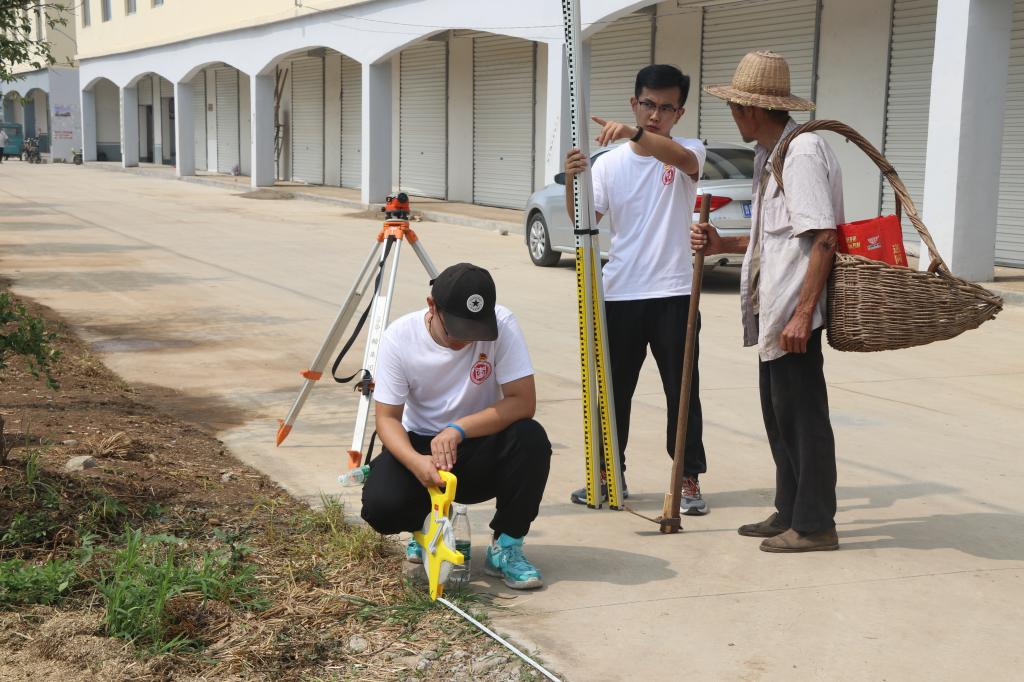 揭牌仪式后,团队成员按照分工开始了对马头村建筑、道路、水质的细致分析。道路勘测小分队使用专业仪器进行实地测量,包括测量高差和绘制地形图,全方位获取相关数据。然后采集了本村的水样,并对水质进行检测。团队成员采用问卷调查的形式对村中道路建设、排水问题和各种设施等情况有了进一步的了解。团队成员还慰问了老党员,给他们送去了米面油。