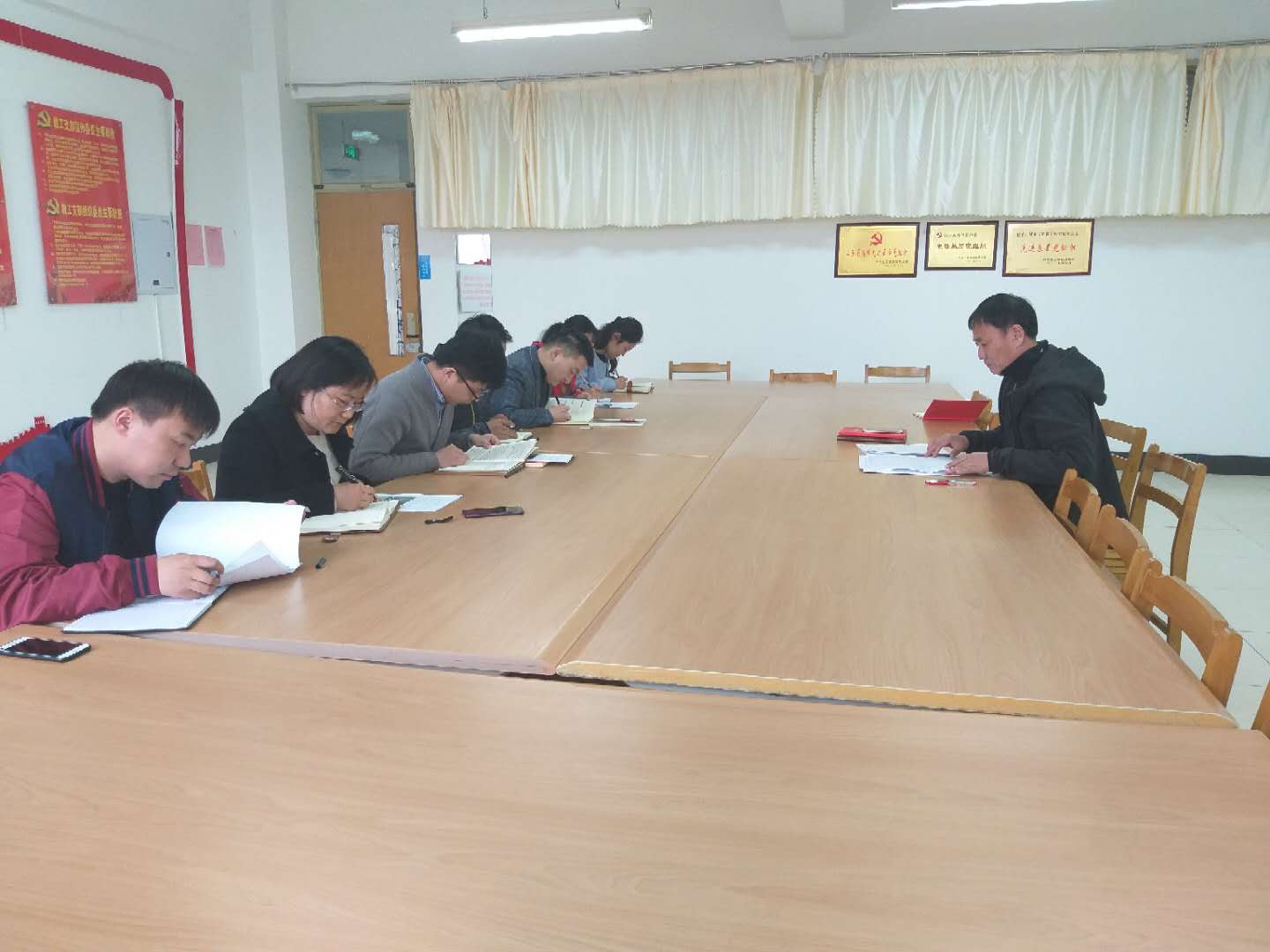 4月2日下午,公司党总支理论学习中心组在理工楼2321室召开专题学习会议,深入学习习近平总书记在公司思想政治理论课教师座谈会上的重要讲话精神和新修订的《党政领导干部选拔任用工作条例》、《发展党员和党费工作操作规程》。党总支书记李振清主持会议,理论学习中心组全体成员参加学习。