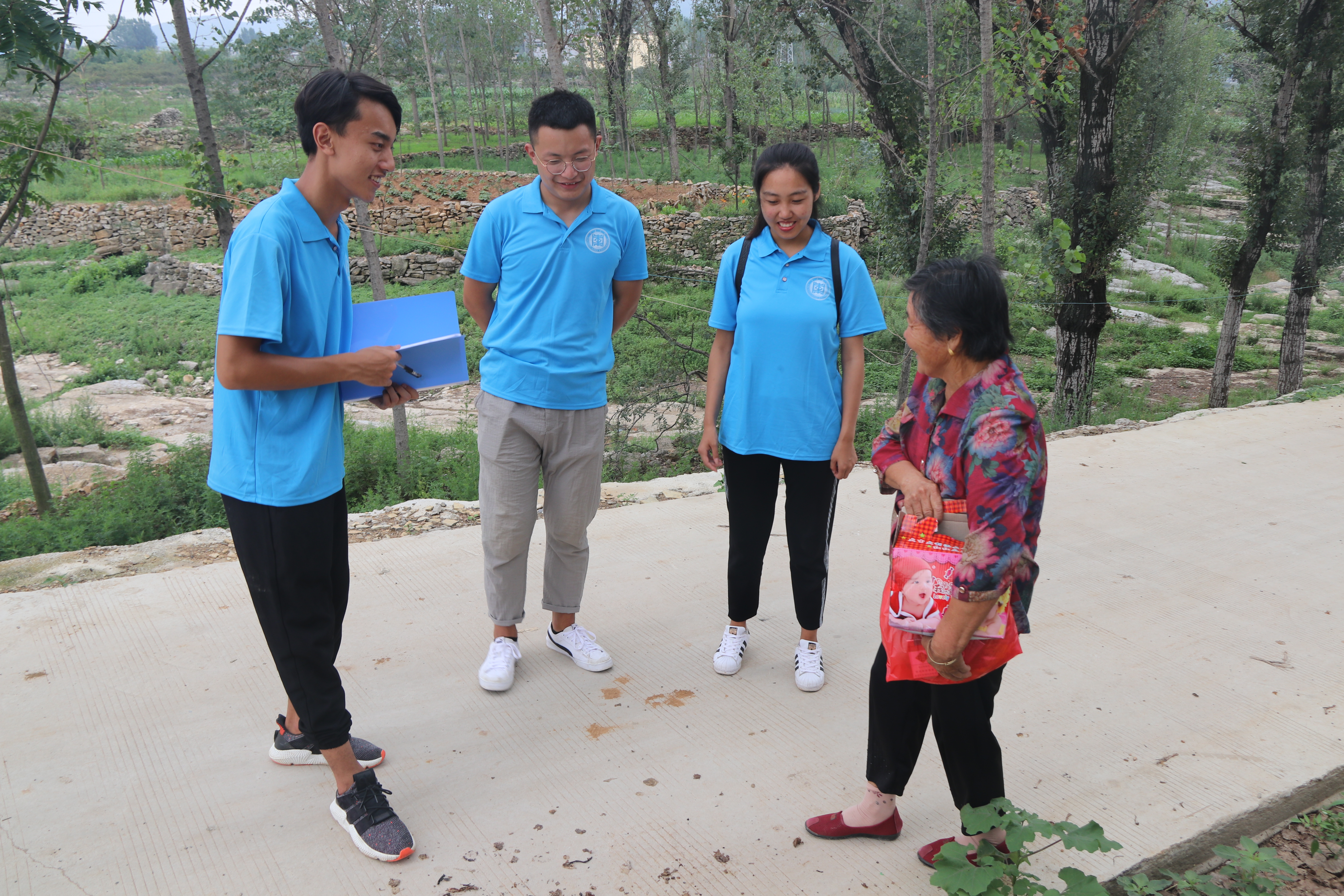 明确任务后,团队水测量小组队员对水城子村水生态环境进行了细致的调查,采集保留了了水样,以便回校实验室后进行更加细致的分析。道路测量小组队员使用专业仪器进行了实地测量,并作了详细记录回校绘制地形图,全方位的获取地形数据并研究相应的道路改进方法。为了进一步了解情况,团队调查小组成员走访村民,询问用水等情况,积极宣传节水、保护水资源等方面的知识,从多方面解决用水困难等问题。同时走访了水城子村部分留守儿童,带去了一些生活和学习用品。与当地的一些空巢老人进行了积极地交流,深入了解了他们的生活状况,并给予力所能及的帮助。