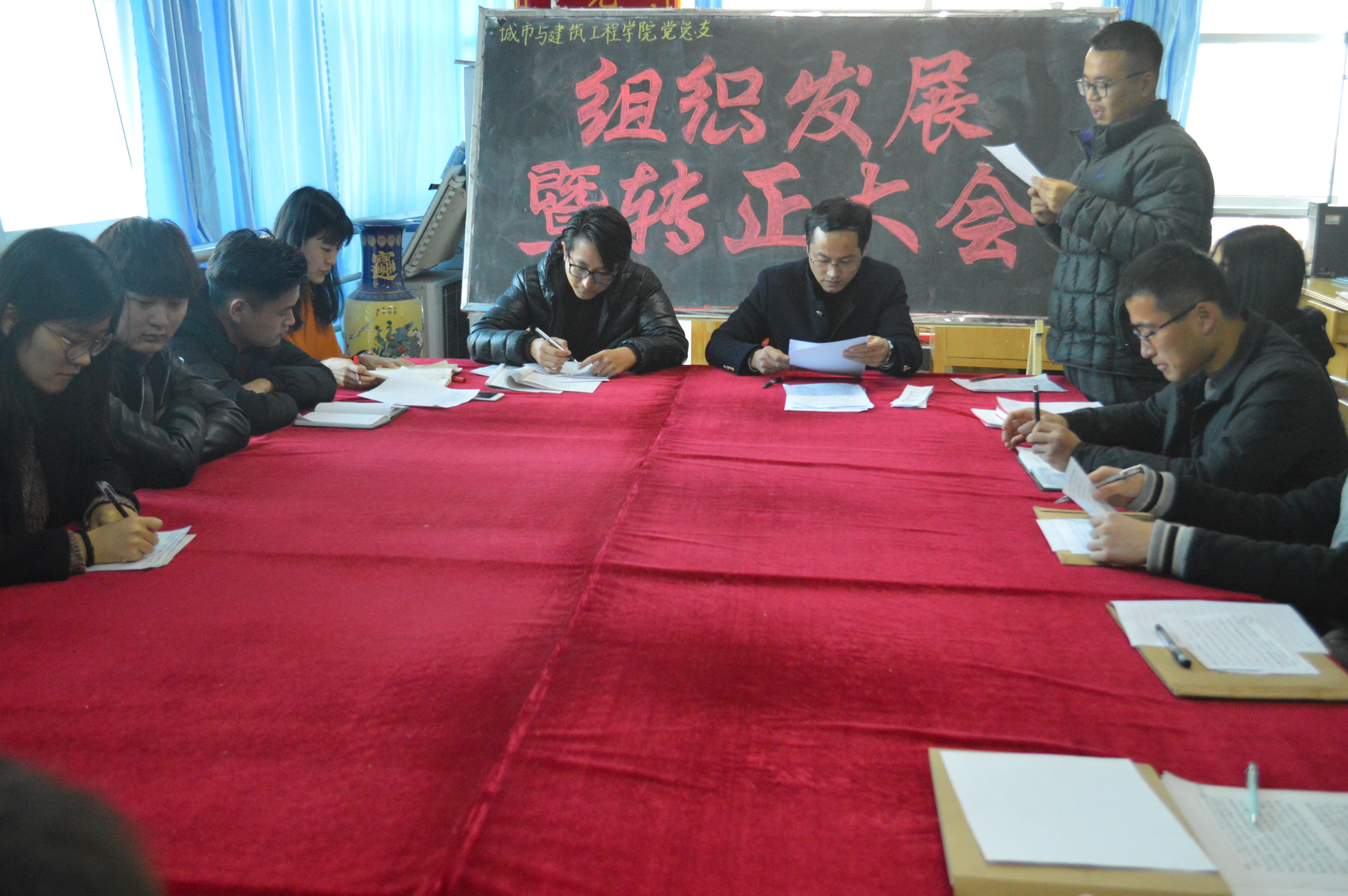 会议由团总支书记胡新华主持。会议内容分两项:预备党员转正及新党员纳新。通过大家认真地讨论和审议和表决,全票通过了刘浩森等3名同志的转正申请,接收了李长利等5名同志为中共预备党员的决定。