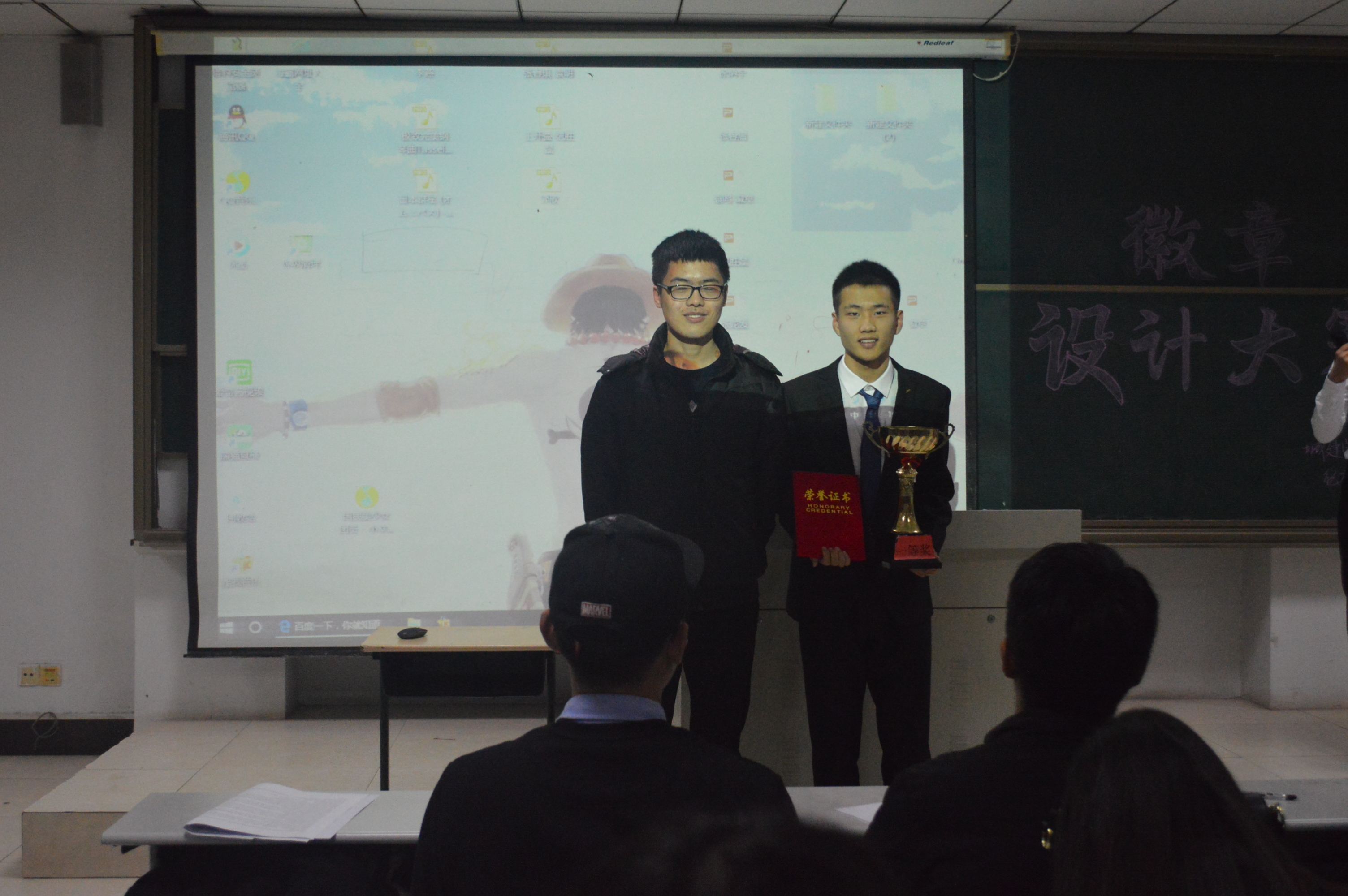 比赛伊始,主持人介绍了本次活动的主题和特色,即“城建与时俱进,设计彰显风采”,同学们充分激发匠心独运的灵感,各个团队利用自己的优势和创新才能来设计独具特色的徽章。各个团队或个人借助精美PPT的形式展示本队为员工会各部或本班设计的徽章,充满激情的在讲台上讲解徽章的设计理念和象征意义。每一个徽章都是设计者汗水与智慧的结晶,更是灵感创新能力的见证。各团队从各部特色出发,设计出了诸多丰富多彩的作品,有的团队用简单的线条和色彩搭配构成了令人眼前一亮的徽章,也有的团队利用专业特点设计出了独具特色的班徽,表达了自己对班级的热爱。经过现场激烈的角逐,纪胜磊团队荣获本次比赛的一等奖,徐彬宇和高雨两个团队获得此次比赛二等奖,更有多个团队获得了三等奖和优秀奖。