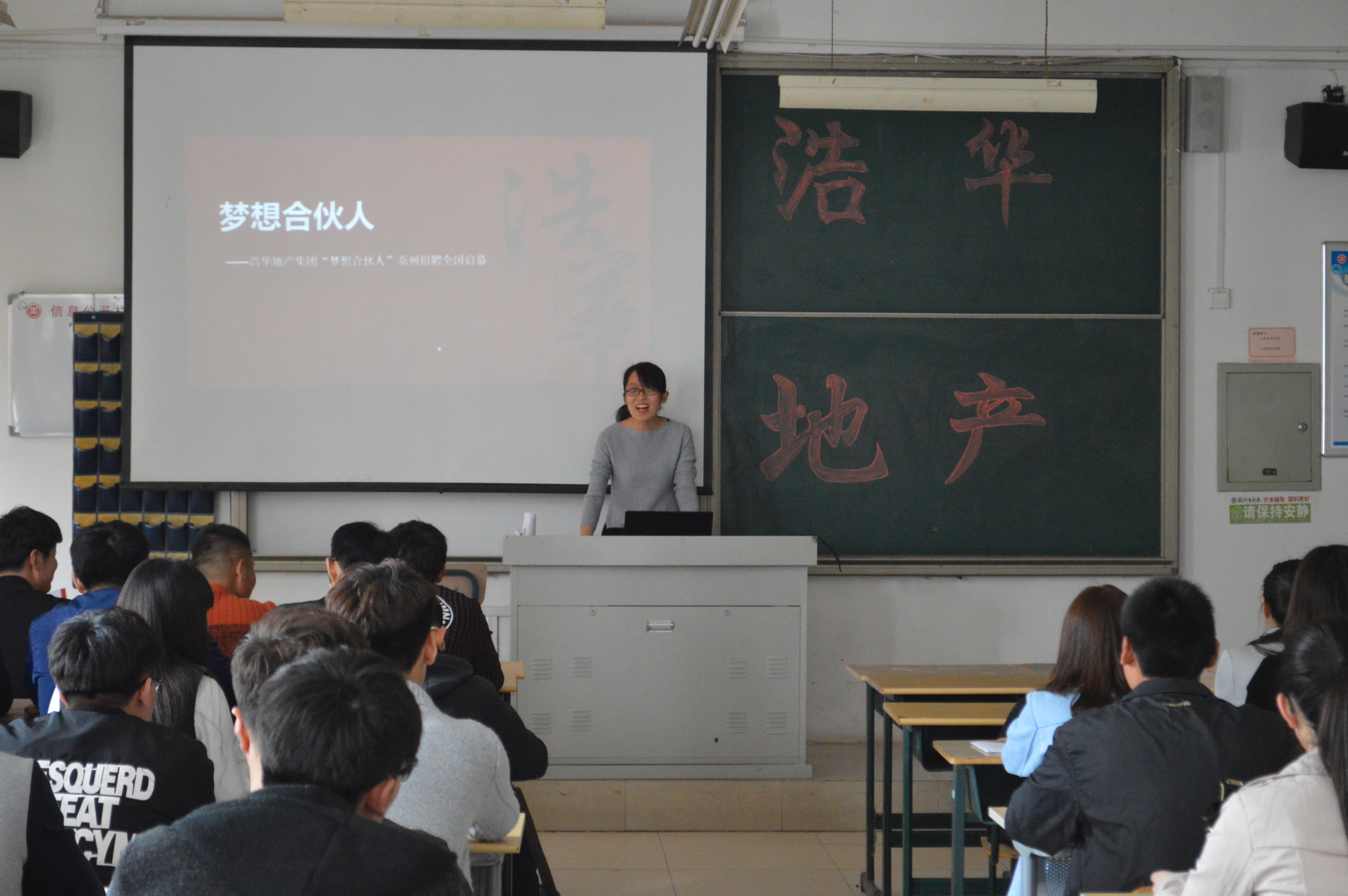 招聘会上,济南浩华地产集团的工作人员通过播放视频和幻灯片的形式,为同学们详细的介绍浩华地产集团的基本情况,包括公司的基本规模,管理模式,工资待遇以及发展前景。随后,招聘会进入了现场咨询环节,针对毕业生比较关心的工资待遇,见习期间的工作时间,工作的假期安排等问题,相关工作人员进行了细致的解答,解决了同学们的后顾之忧。最后,员工填写了就业意向书,部分毕业生与用人单位初步达成就业意向。