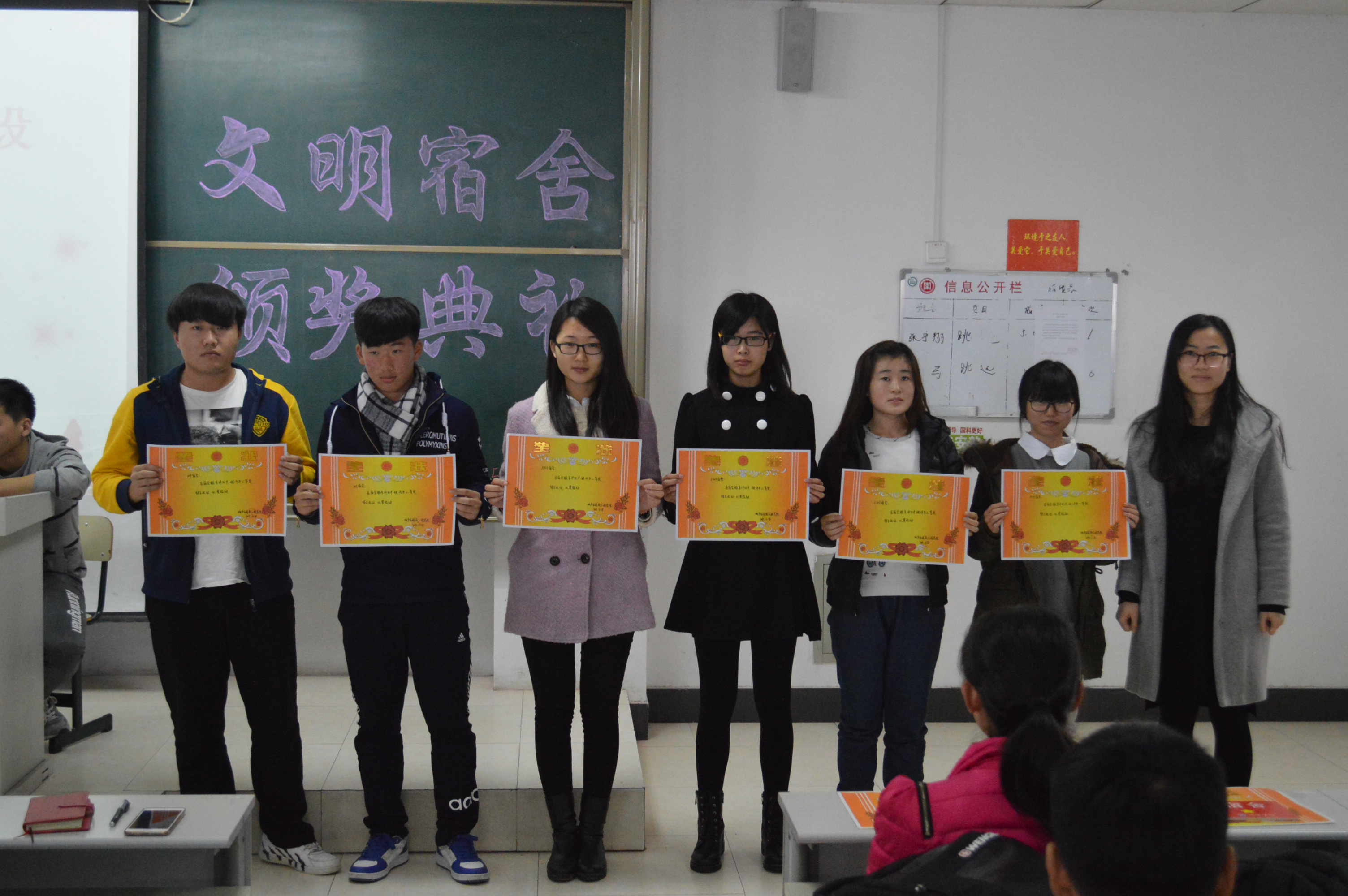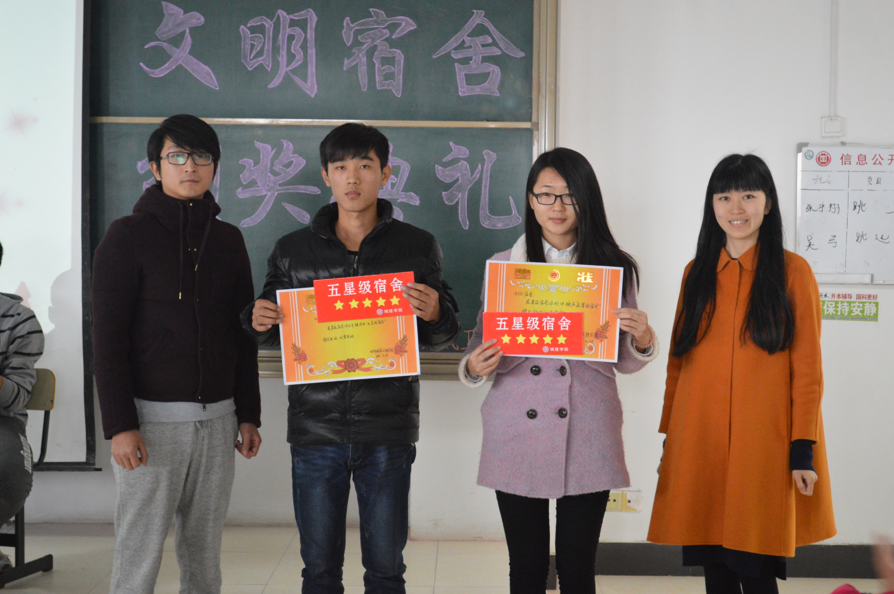 此次宿舍评比从卫生、安全、和谐等方面,全方位多角度地对宿舍进行评比。全体同学积极配合,认真准备评比内容。最终评选出五星宿舍两个,四星级宿舍三个,三星级宿舍四个。男生宿舍108和女生宿舍A335获得了“五星宿舍”的称号;D307宿舍的“素舍”被评选为最佳宿舍雅号;D303宿舍的微视频则以其独特的创意和精美的制作斩获一等奖。