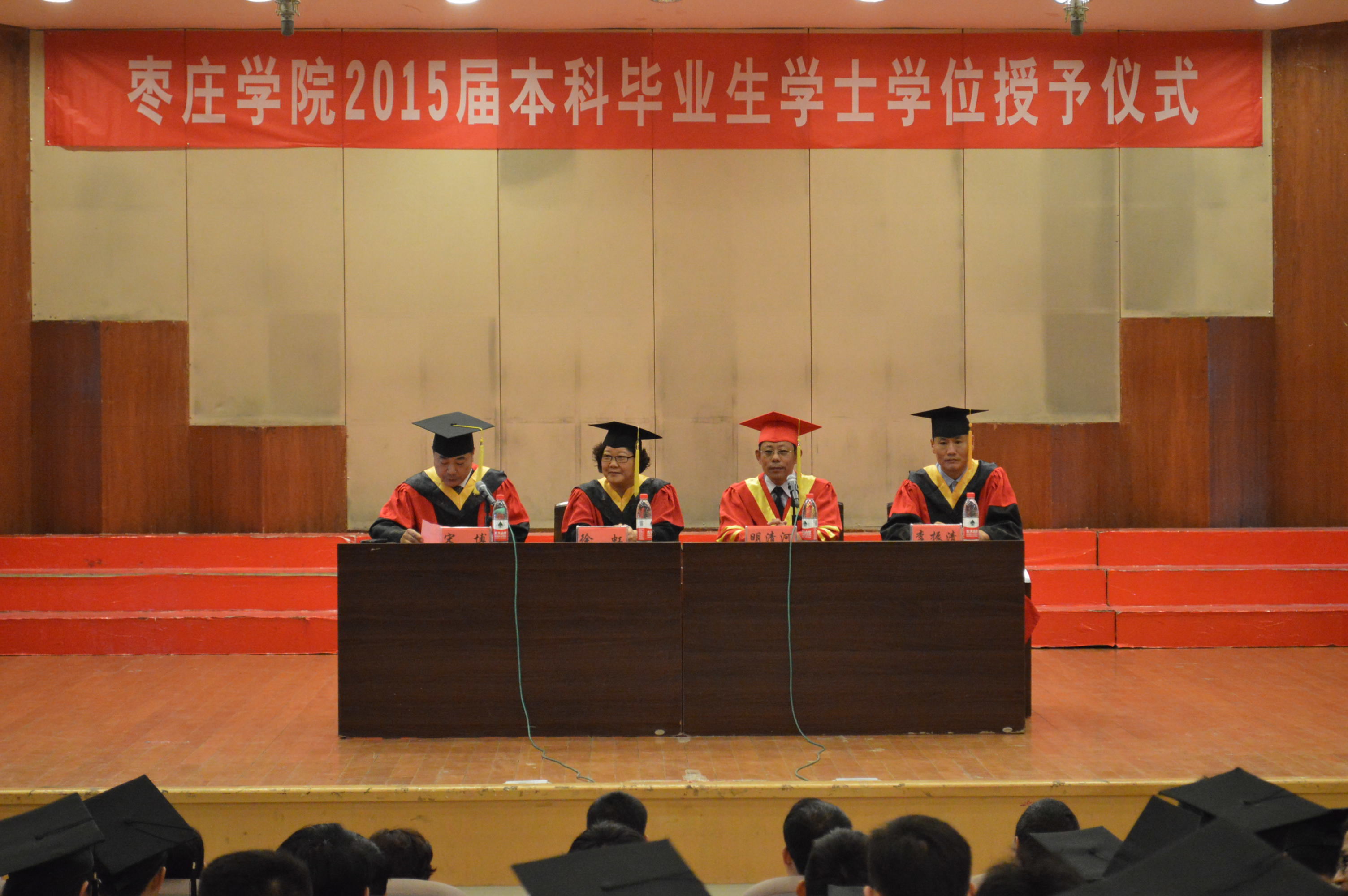 上午,伟德国际1946在音乐厅举办2015届本科毕业生学士学位授予仪式。公司党委委员、副董事长明清河教授、教务处处长徐虹教授出席学士学位授予仪式。公司党总支书记宋博主持仪式。