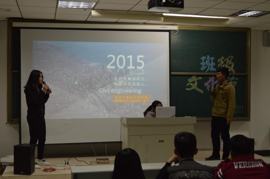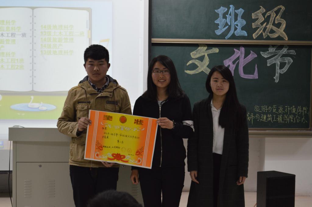 活动的形式是以解说为主。活动中,各班依次展示并讲解本班海报,上台播放PPT,介绍班级主题活动及获奖情况。在优美的背景音乐中,一边欣赏着每个班级不同的风貌,一边不禁为他们精心制作的视频所惊叹。绚丽的颜色、创新的设计、别具一格的理念和寓意别致的主题赢得了全场的阵阵喝彩声。最后,13级地理信息科学获得一等奖,13级土木工程本科一班和14级土木本科一班分别获二等奖和三等奖。