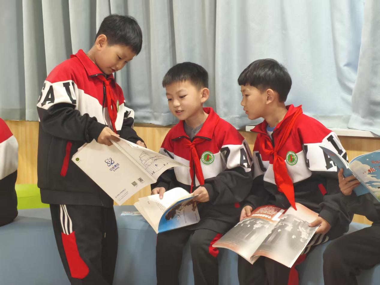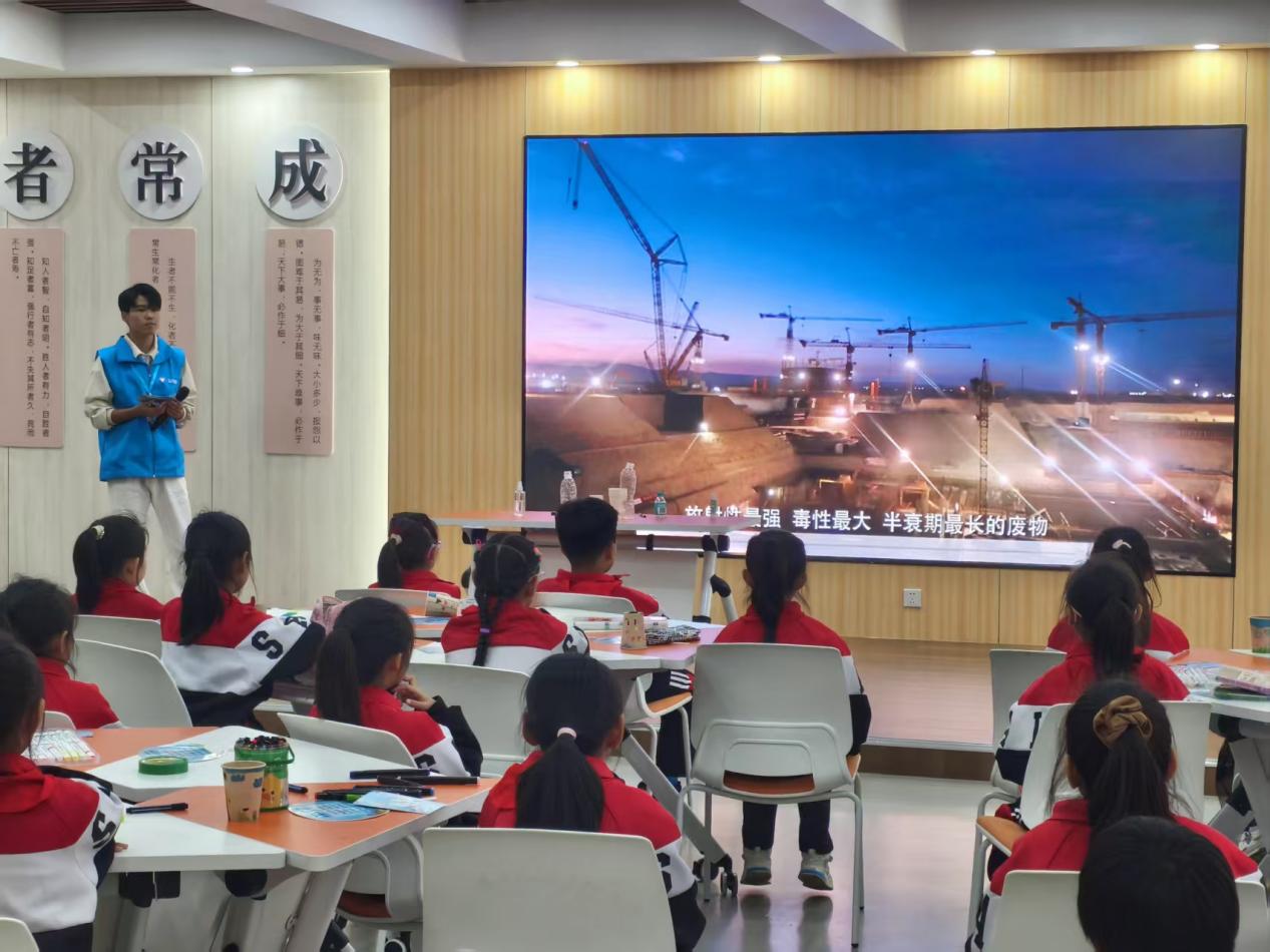 活动现场,党员们作为“志愿宣讲员”与“科普引路人”,通过丰富多样的形式传递知识与精神力量。趣味十足的“火箭升空小实验”,让孩子们在动手操作中探寻反冲力奥秘;甘肃北山“万年级”核废料处置工程的科学解读,结合科学家扎根戈壁的奉献事迹,让爱国坚守的精神浸润童心。拼搭“华龙一号”积木模型,直观展现大国重器的磅礴气势;解锁鲁班锁、搭建倍力桥、制作风铃、主题书籍阅读与益智绘画等环节,既让孩子们感受传统工艺与现代科技的魅力,又锻炼了动手能力与协作意识。互动交流中,志愿者们耐心解答疑问,引导孩子们写下心中梦想,让红色基因与科学精神在实践中生根发芽。