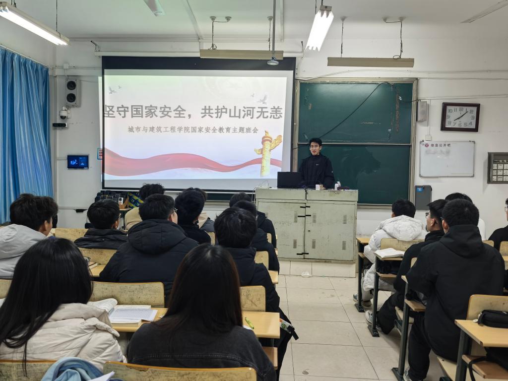 活动中,辅导员唐家良老师通过案例讲解、视频展播、互动研讨等形式,系统解读总体国家安全观的核心内涵,重点围绕政治安全、网络安全、工程信息保密等与专业紧密相关的领域展开讲解。结合建筑施工中的信息泄露案例、城市管网安全隐患事件等,生动阐释了国家安全与行业发展、个人成长的密切联系,引导员工树立“国家安全无小事,人人都是守护者”的理念。互动环节,同学们结合专业学习和实习经历,围绕“工程领域如何防范安全风险”“青年学子怎样践行国家安全责任”等话题交流发言。
