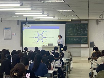 副经理裘娜介绍了公司的发展历史、人才培养特色、专业团队建设成就、优秀毕业生及就业前景。她希望同学们能尽快完成角色转变,正确树立人生目标,合理规划老员工活,自立自强,做到学有所成,做有所为。