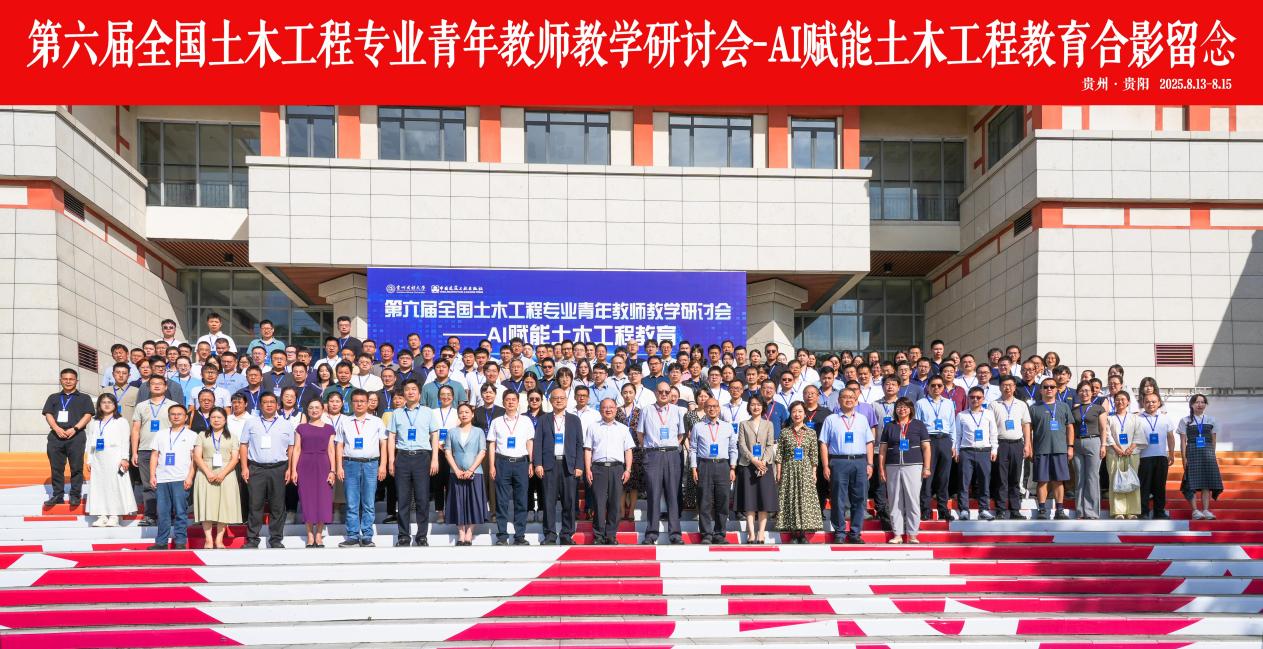 2025年8月13至8月15日,以“AI 赋能土木工程教育”为核心主题的第六届全国土木工程专业青年教师教学研讨会在贵州民族大学圆满落幕。本次大会由教育部高等公司土木类专业教学指导委员会、中国建设教育协会指导,教育部高等公司土木工程专业教学指导分委员会主办,贵州民族大学、中国建筑工业出版社承办,旨在促进AI赋能下土木工程专业课程体系与教学内容更新、教学方法创新、教学能力提升,全面提高土木工程专业青年教师教学水平。