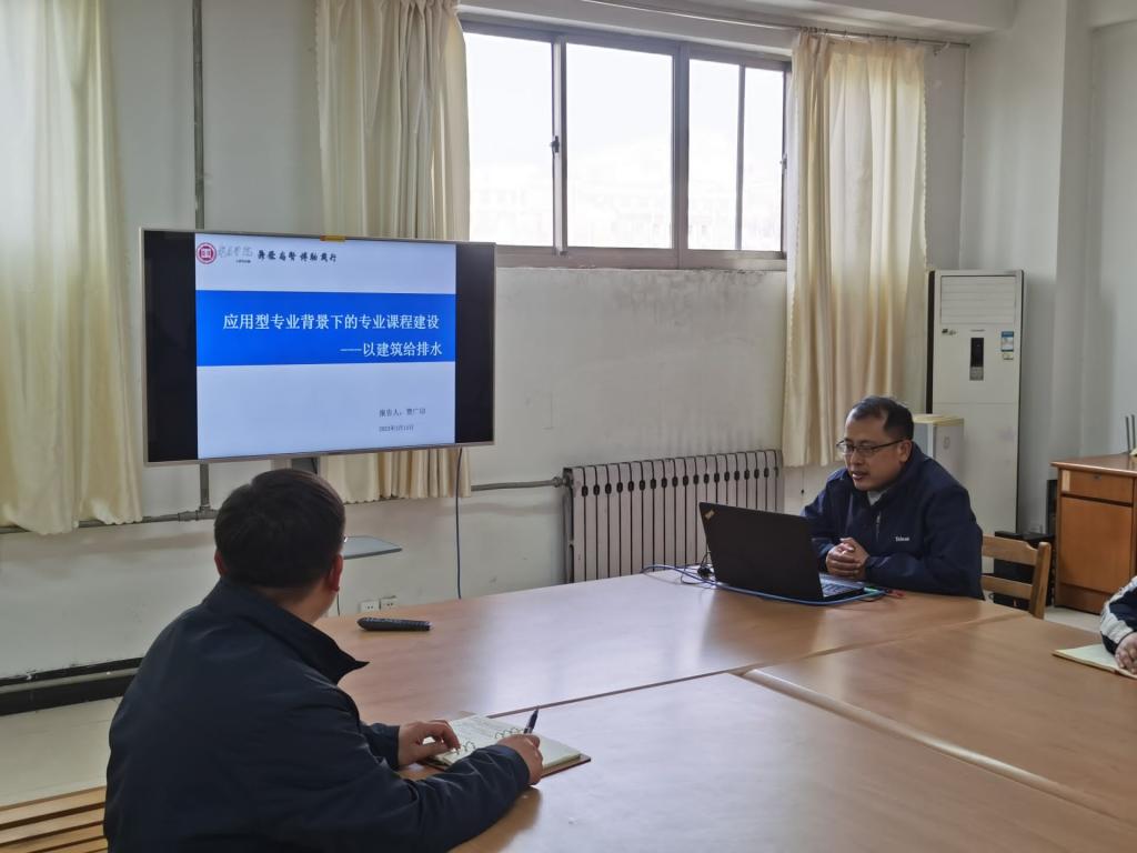 贾老师以给水排水科学与工程专业核心课程《建筑给水排水工程》为例,主要从认识实习、生产实习、课程教学、课程设计、毕业设计和毕业实习等方面介绍了应用型专业背景下的专业课程建设。最后,与会教师结合自身工作实际,就高水平应用型专业建设、课堂教学改革与创新、老员工实习实训等热点话题进行了讨论交流。