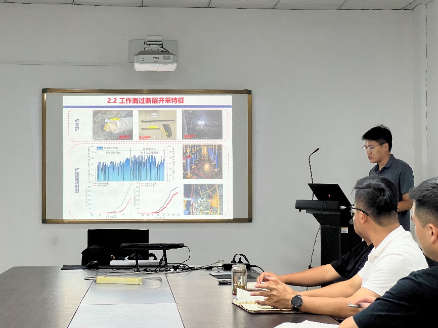 杨东山博士首先做了题为“棋盘井煤矿断层构造区切顶成巷特征及围岩控制对策研究”的学术报告。通过对棋盘井煤矿断层构造区的特点进行分析,建立了切顶成巷工作面过断层三阶段的力学模型,推导了采场顶板的内力弯矩和应力表达式,阐明了工作面过断层构造区顶板运移规律。通过物理模型试验,揭示了工作面过断层构造区切顶成巷围岩应力演化规律。利用数值模拟,揭示了切顶碎胀充填对过断层构造区成巷围岩稳定性控制机理,提出了相应的控制技术。