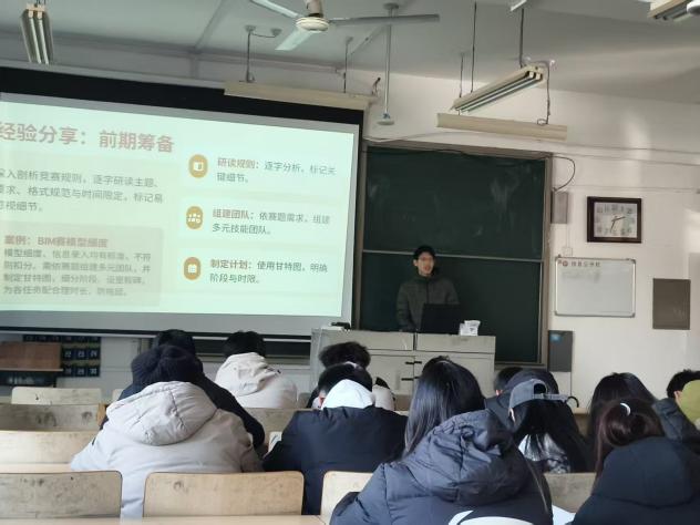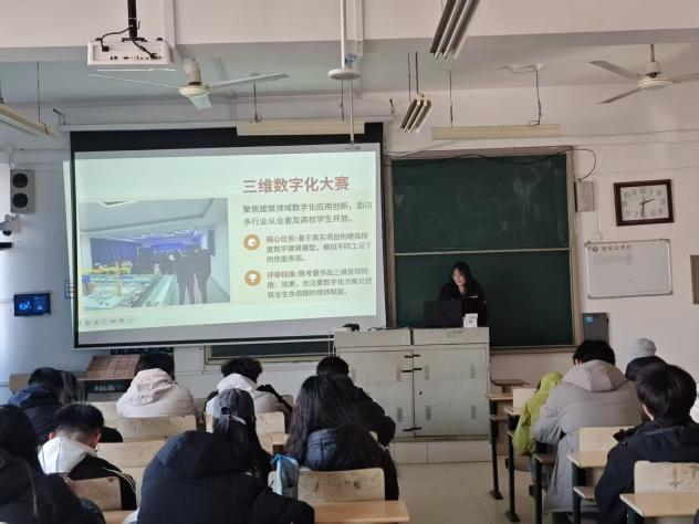 首场活动“迈入工坊,遇见匠心”建筑创新类赛事分析与指导精品课在理工楼2318开展,协会骨干结合丰富赛事经验,围绕建筑创新类赛事项目、竞赛规则及核心知识展开细致讲解,通过案例剖析、实操演示等形式,针对性指导同学们掌握画图、识图、建模及建筑渲染等关键技能。现场还深入解读了三维数字化大赛等赛事的核心任务与评审标准,分享了研读规则、组建多元技能团队、用甘特图规划进度等备赛技巧。同学们踊跃互动、分组实操,在交流中夯实实操基础,沉浸式感受建筑设计的匠心与乐趣,有效激发了竞赛热情与创新思维。
