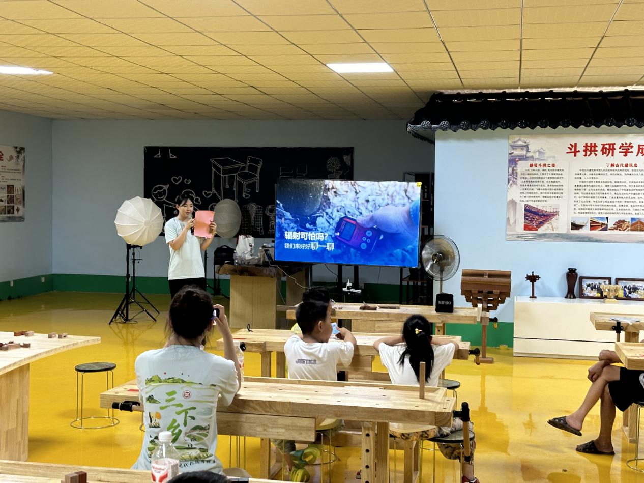 团队思政导师、马克思主义公司王婷婷老师在非遗小院开讲“两弹一星”微党课;“两弹一星”精神宣讲团队成员通过《生活中的核辐射》科普课堂,用科学破除认知迷雾,为村民普及核辐射知识,激发孩子们弘扬“两弹一星”精神的热情;实践团还开展了“班墨匠心,智启未来”主题宣讲,开展“鲁班小工匠”挑战赛、未来工匠畅想墙等活动,小朋友们、村民与青年志愿者共话技艺传承与乡村发展。