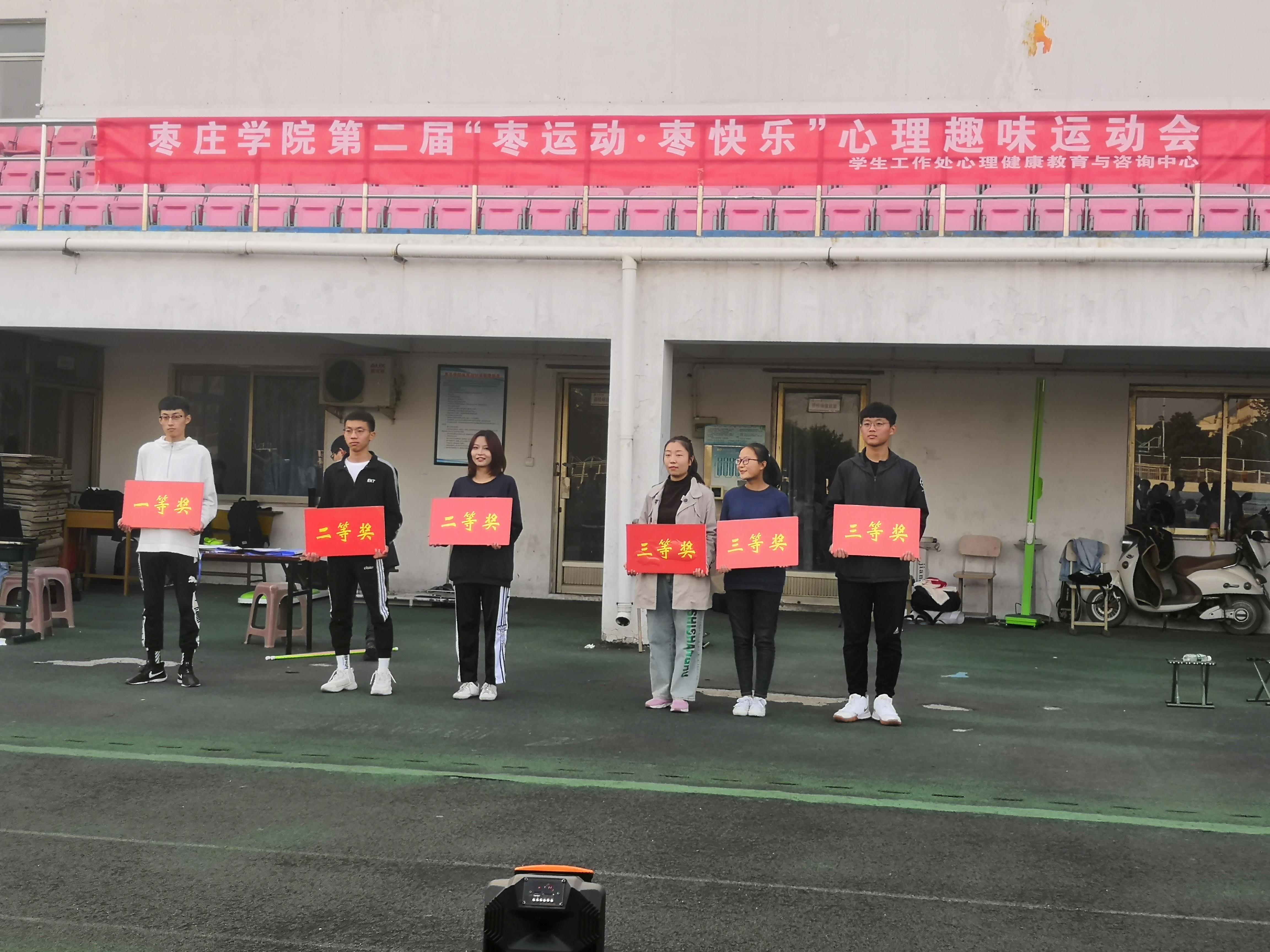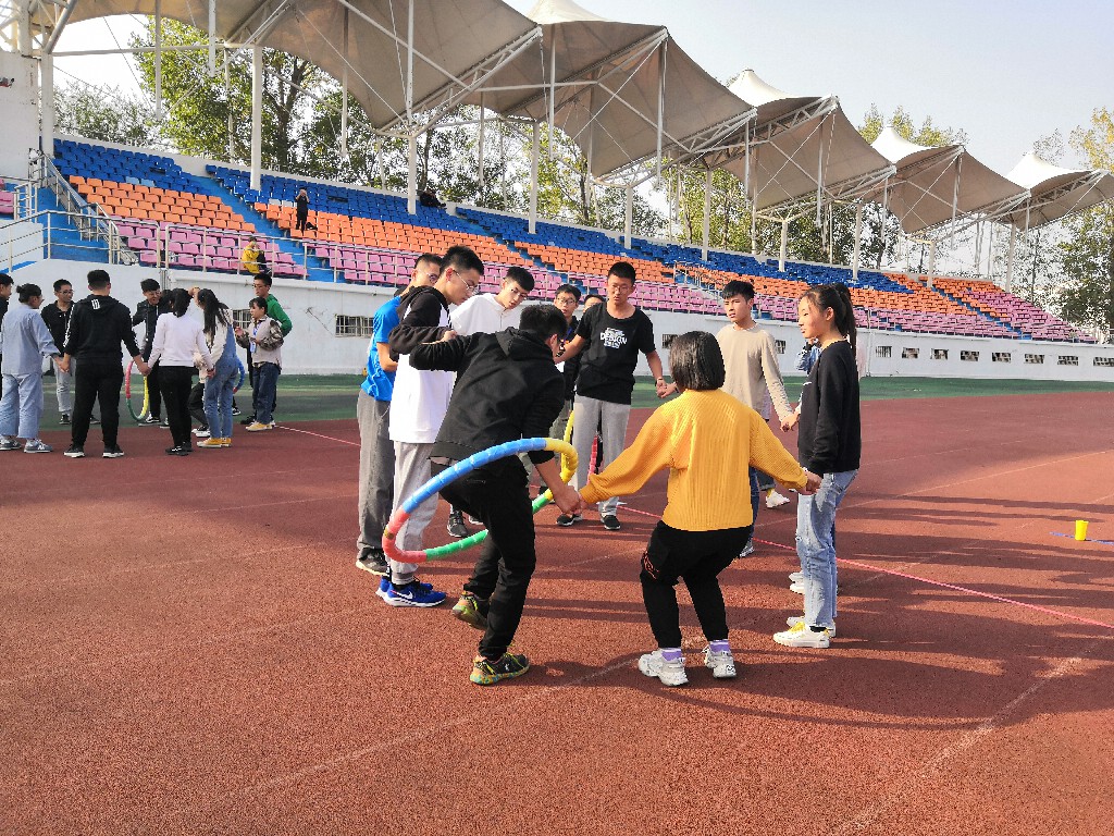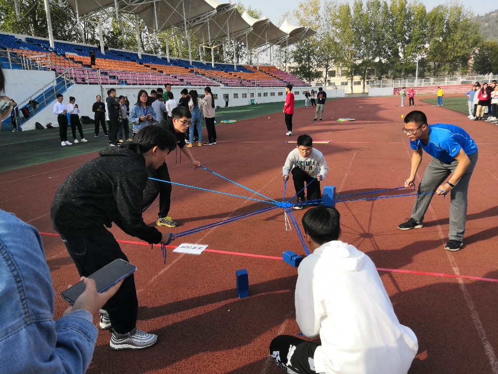 此次心理趣味运动会共计4个项目。赛前公司认真组织了初赛,首先进班宣传此次活动,动员大家积极报名参与。而后,10月19日上午于西田径场从报名的43名同学中选出11位同学组成了参赛队伍。10月19日下午、10月20日队员们反复练习,交流各个项目的技巧。10月30日下午,大家满怀期待迎接比赛。第一个项目为"珠行万里"。在第二个项目"呼啦圈过山车"、第三个项目"不倒森林"中公司队伍表现突出,紧张而有序,娴熟的动作赢得了其他队伍的一致喝彩。在最后一个项目"步步高升"时,五位队员紧张而又沉稳的完成了任务。最终公司以最短的时间取得了团体一等奖的好成绩。
