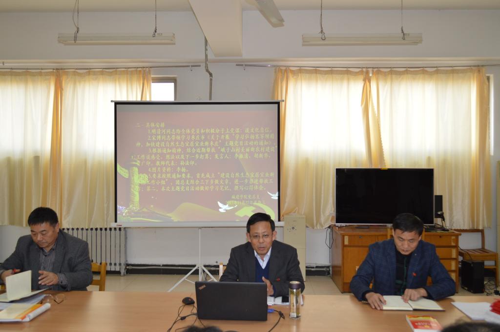 最后总支结合本次主题党日主题作出要求:首先党员同志必须把十九大精神学深学透,不走形式,不走过场,坚持文化自信,坚决抵制低俗,做一名传播中华优秀文化的使者;第二成立“建设自然生态宜居宜业新枣庄工作小组”,团总支结合三下乡做文章,进一步推进“美丽乡村”建设帮扶工作;第三就本次主题党日活动作好学习笔记,撰写心得体会。