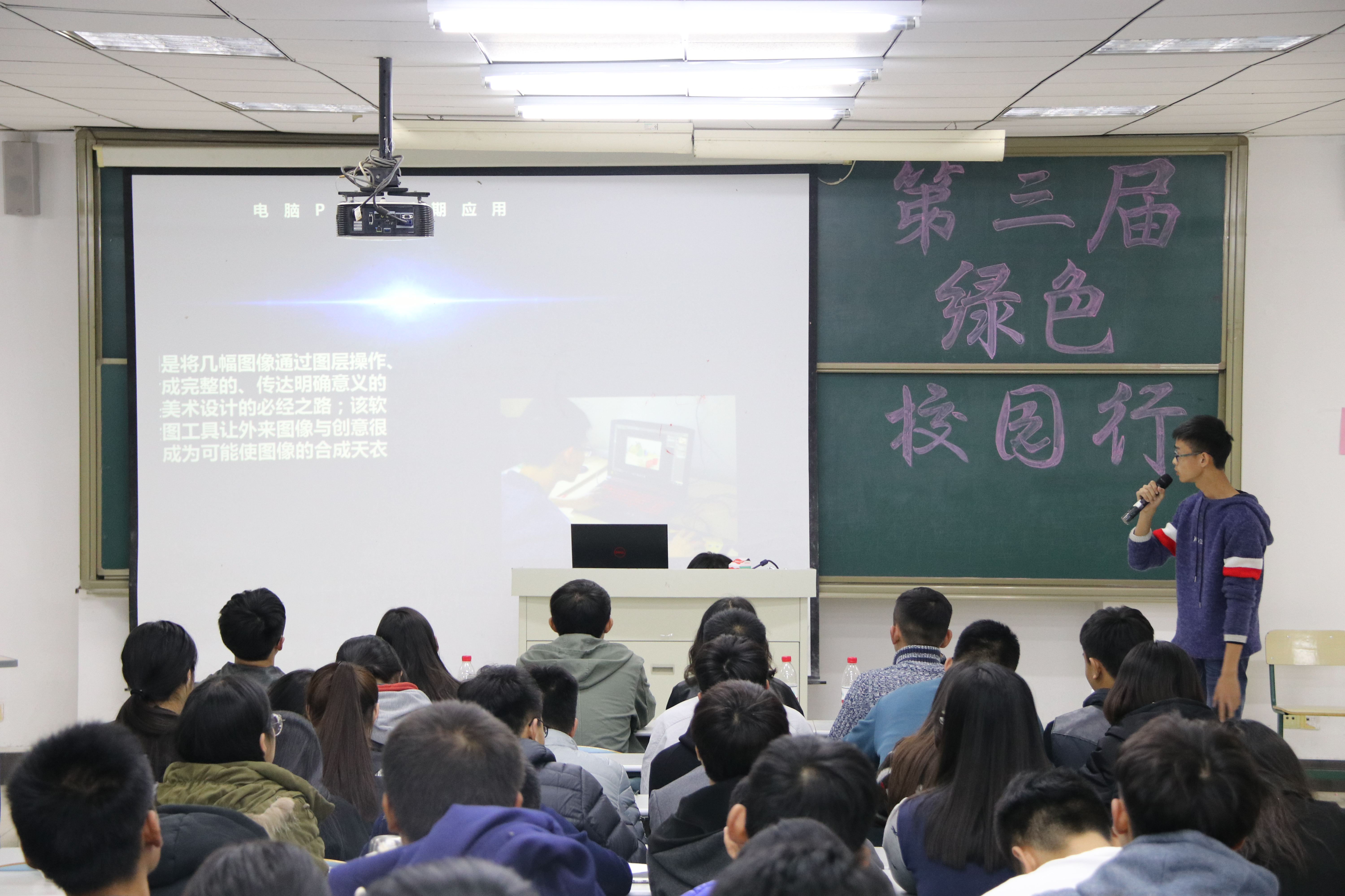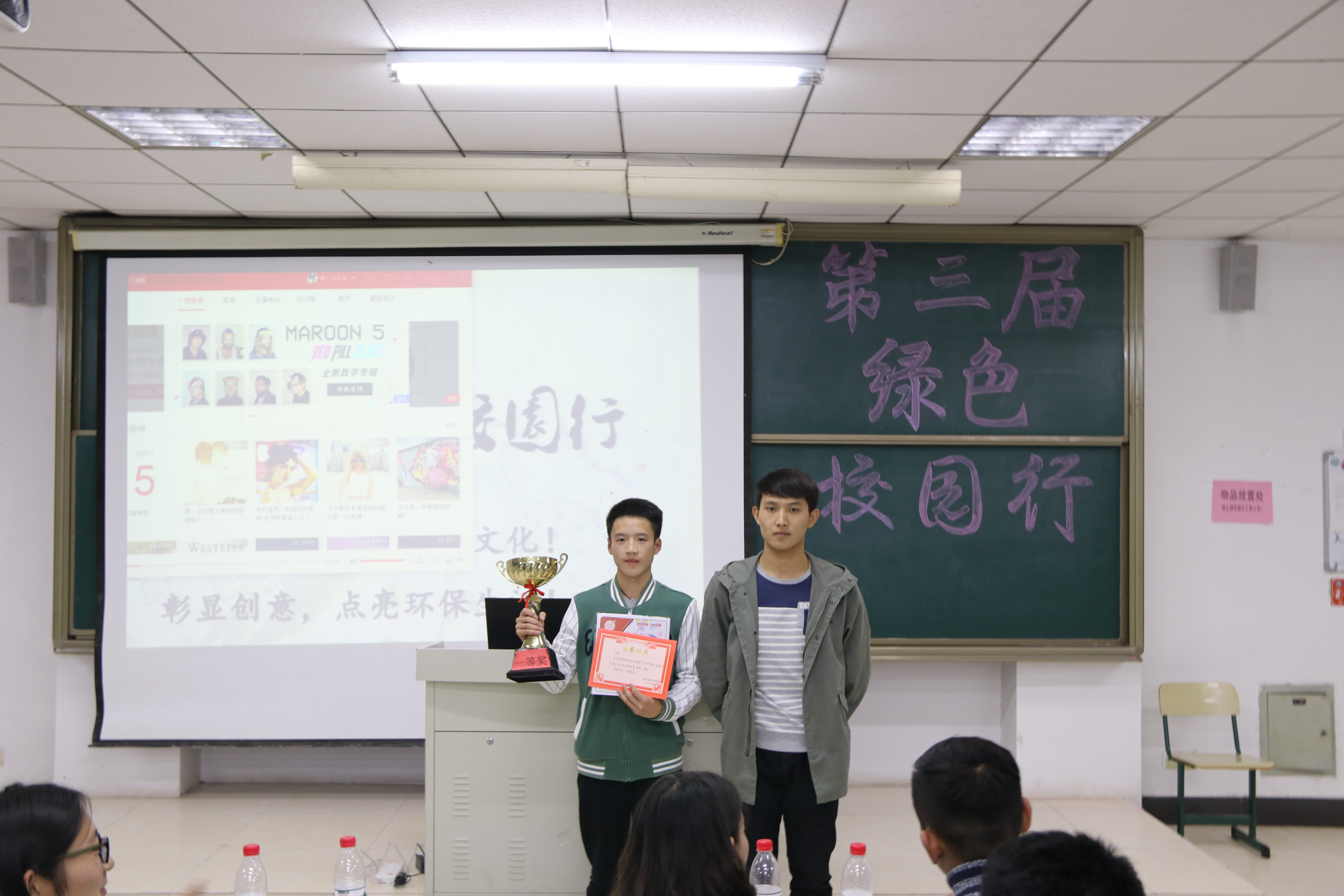 “绿色校园行”活动第一环节中,各班代表轮流上台进行讲解,通过视频演示展现自己班级的绿色风貌,慷慨激昂的演说展现出了选手扎实的语言表达能力,充满创意的短视频充分体现出各个班级的精诚合作。经过激烈角逐,土木工程专升本以其独具创意获得本次评选活动的一等奖,土木本科一班获得二等奖,其他班级获得三等奖。