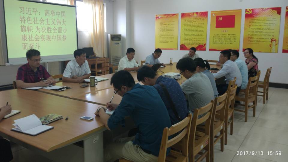 根据公司党委要求,公司党总支于9月13日主题党日活动,组织全体党员干部深入学习贯彻习近平总书记在省部级主要领导干部专题研讨班开班式上的重要讲话精神,进一步增强“四个意识”、坚定“四个自信”,始终做到思想到位、行动对标,全力做好当前各项工作,以优异成绩迎接党的十九大胜利召开。