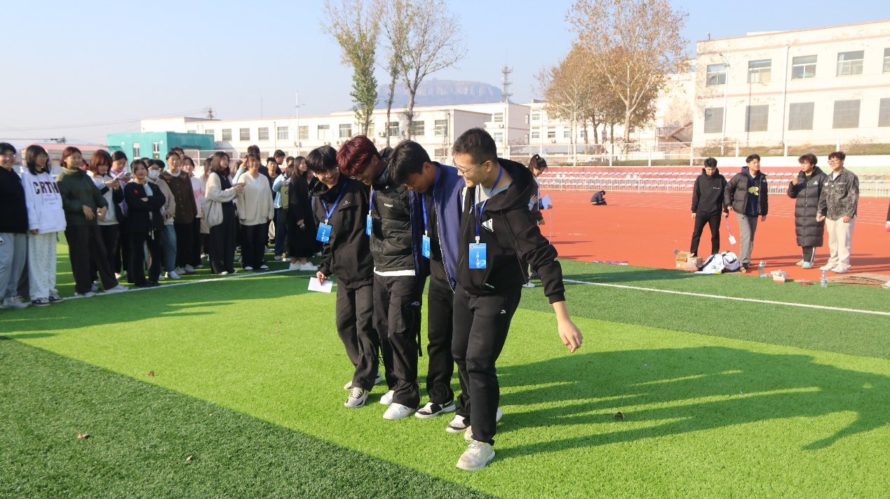 运动会以宿舍为单位进行分组,共设置了绑腿赛跑、你投我接、撕名牌大战、小小快递员以及搭桥过河五个比赛项目,旨在通过团队合作的形式展现青春活力,增进同学间的凝聚力和向心力。活动现场气氛热烈,加油声此起彼伏,各组同学积极拼搏,齐心协力,为集体荣誉全力以赴,充分展现了积极向上、拼搏团结的精神风貌。