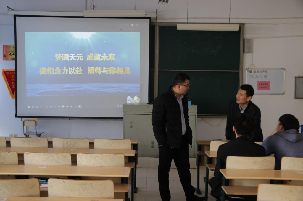 会议开始,由公司就业指导老师张志刚致辞,并对目前毕业生面临的就业环境做了简要说明。随后,招聘会负责人以视频和简报的形式就公司的注册地址,规章制度,企业文化,现有资质认证,仪器设备,组织构架,人力资源政策等多个方面向同学们做了简单介绍,并就实习期员工的福利待遇做了明确解释。其后,招聘会负责人对公司的细节进行了更为精细的阐述。最后,同学们积极踊跃的提出自己的问题与疑惑,招聘会负责人耐心的进行现场解答。企业方表示真诚的邀请同学们加入天元,实现自己的梦想!